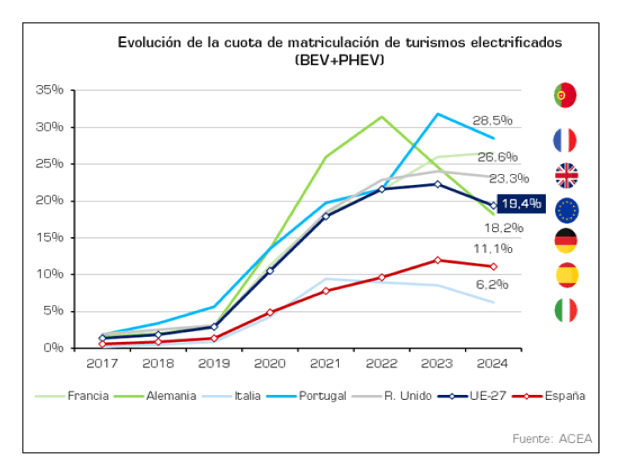 Y, ¿qué pasa en Europa en los turismos electrificados en lo que se refiere a la cuota en las matriculaciones?