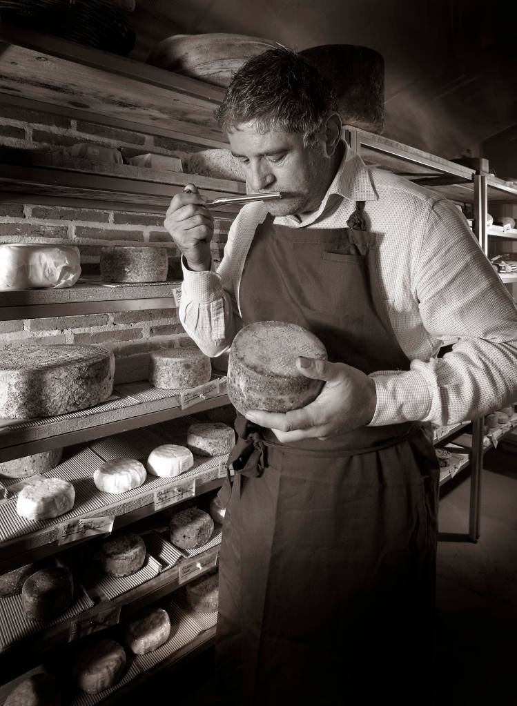 en el diseño y la puesta en marcha de alguna de las tiendas más emblemáticas de quesos en este país. Además, el hecho de conocer personalmente a los productores, e incluso asesorarlos en la fabricación y el diseño de sus productos, le permite seleccionar lotes específicos, en diferentes estadios de maduración, para completar el afinado del queso y así convertir cada pieza en un producto único y diferente. Es asesor y consultor para queserías artesanales y diseño de producto, así como para las mejores tiendas especializadas del país. Director de Espacio Gourmetquesos del Salón de Gourmets desde el año 2004, director y coordinador del Campeonato de los Mejores Quesos de España, director técnico y jurado en concursos y catas nacionales e internacionales de quesos, colaborador del Ministerio de Agricultura y de